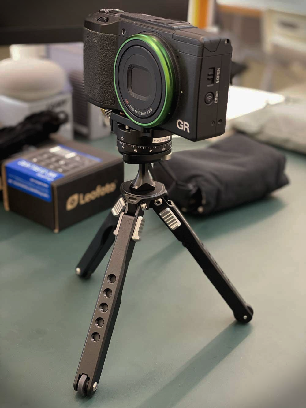 실제로 내 똑딱이 리코 GR2를 결합한 모습이다. 다른 리뷰에서 봤을 때 이보다 훨씬 큰 DSLR를 결합한 모습이 많은데 거기서도 안정적이라 했으니 나는 오죽하겠나... 그냥 이대로 사용해도 될 정도로 매우 안정적이고 콤팩트하다.