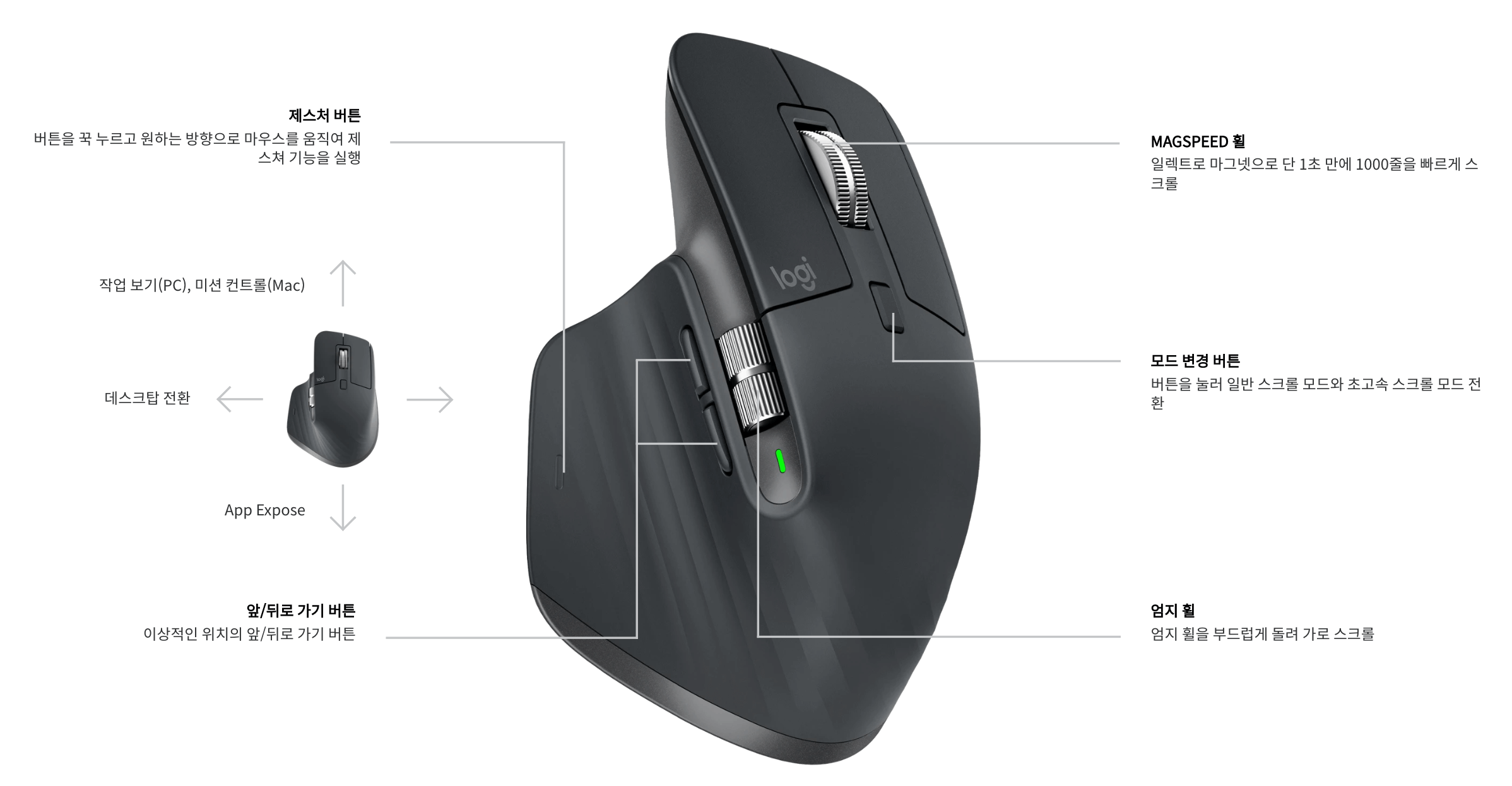 오히려 기존 MX MASTER 3 모델의 '그래파이트(블랙)' 컬러가 맥북의 '스페이스 그레이'와 비슷하다고 한다.