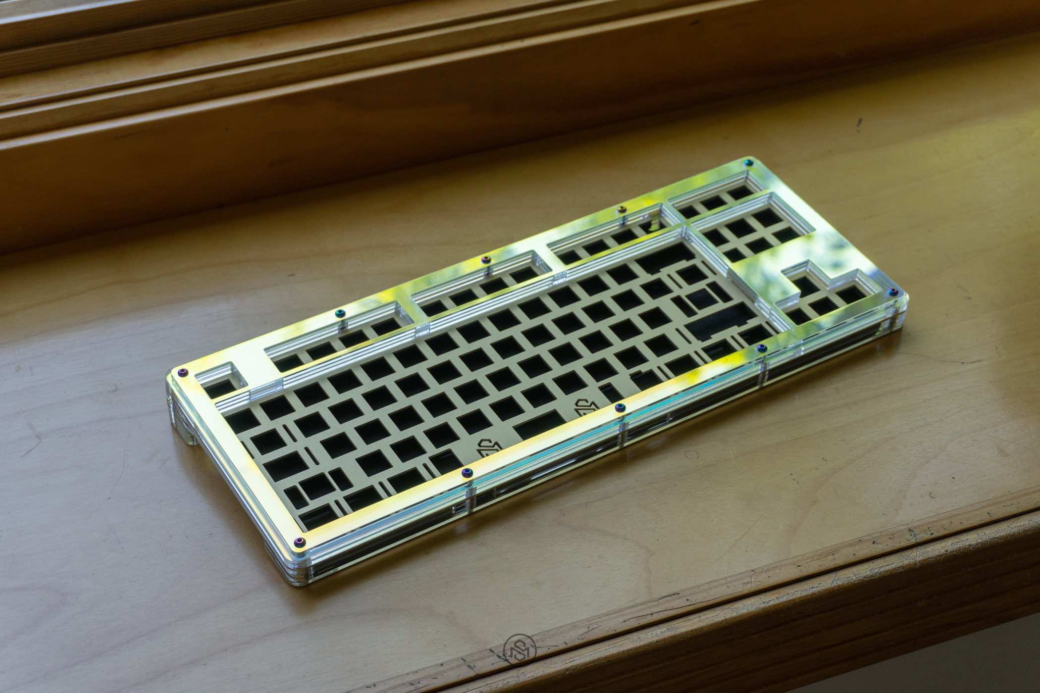 아크릴 하우징은 크게 2가지 방식으로 제작되는데 하나는 얇은 아크릴 판을 슬라이스 형식으로 하나하나 쌓아 올려 만든 적층 방식과, 다른 하나는 두꺼운 통 아크릴을 CNC 기계로 깎아내어 만든 방식이 있다. 예전에는 전자의 방식으로 만들어진 것이 대부분이었으나 기술의 발전으로 틀을 깎아 만든 하우징도 많아졌다. 아크릴은 소재 자체가 저렴하고 가공성이 좋아 만들기가 쉬우며, 아크릴 하우징 특유의 통울림과 타건감을 느낄 수 있어 커스텀 시장에서 가장 선호하는 소재이다. 컬러도 다양하여 개성이 담긴 하우징을 만들 수 있으나 최근엔 LED를 활용하여 투명이나 반투명 재질의 하우징이 인기가 많다.