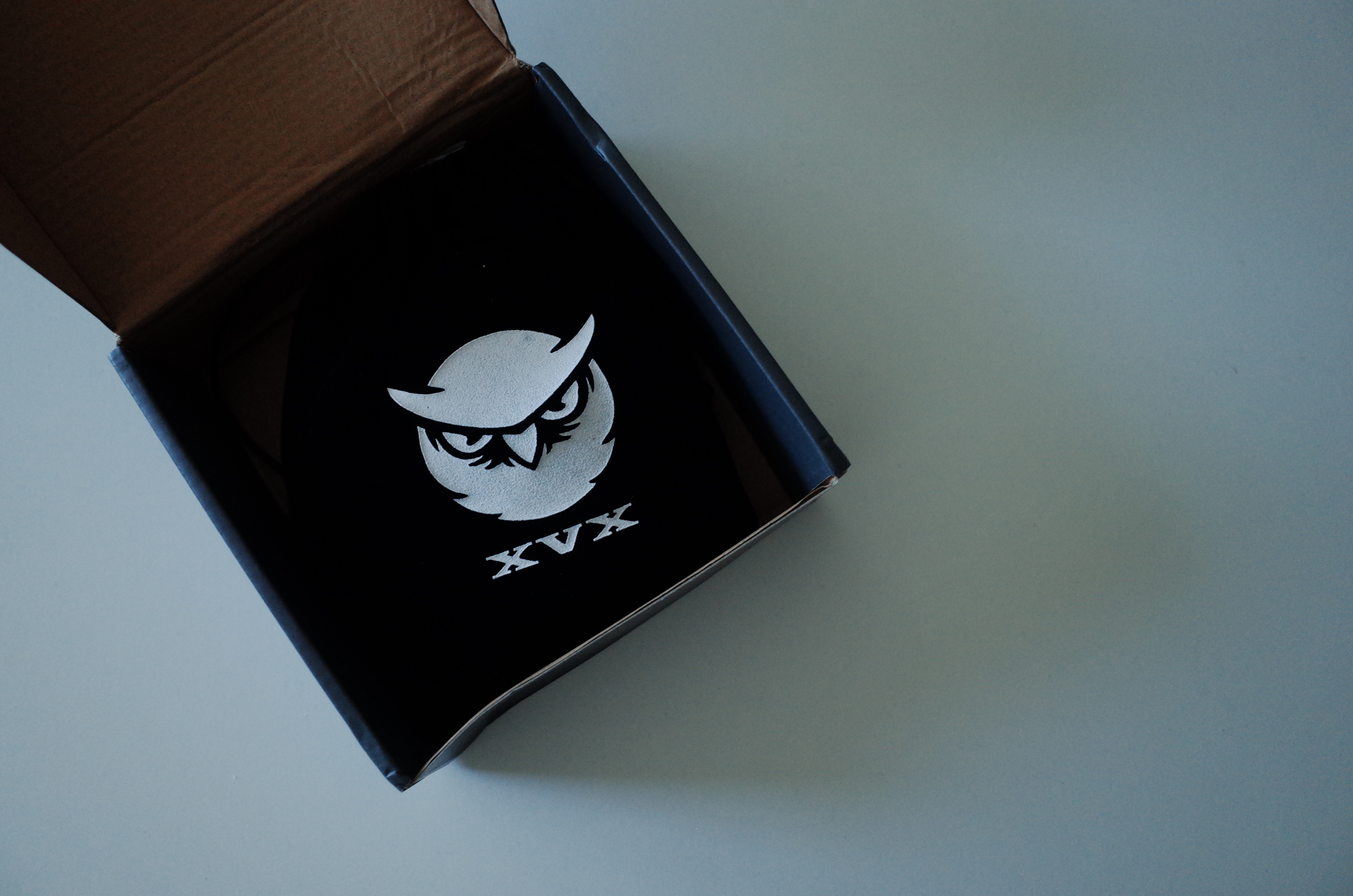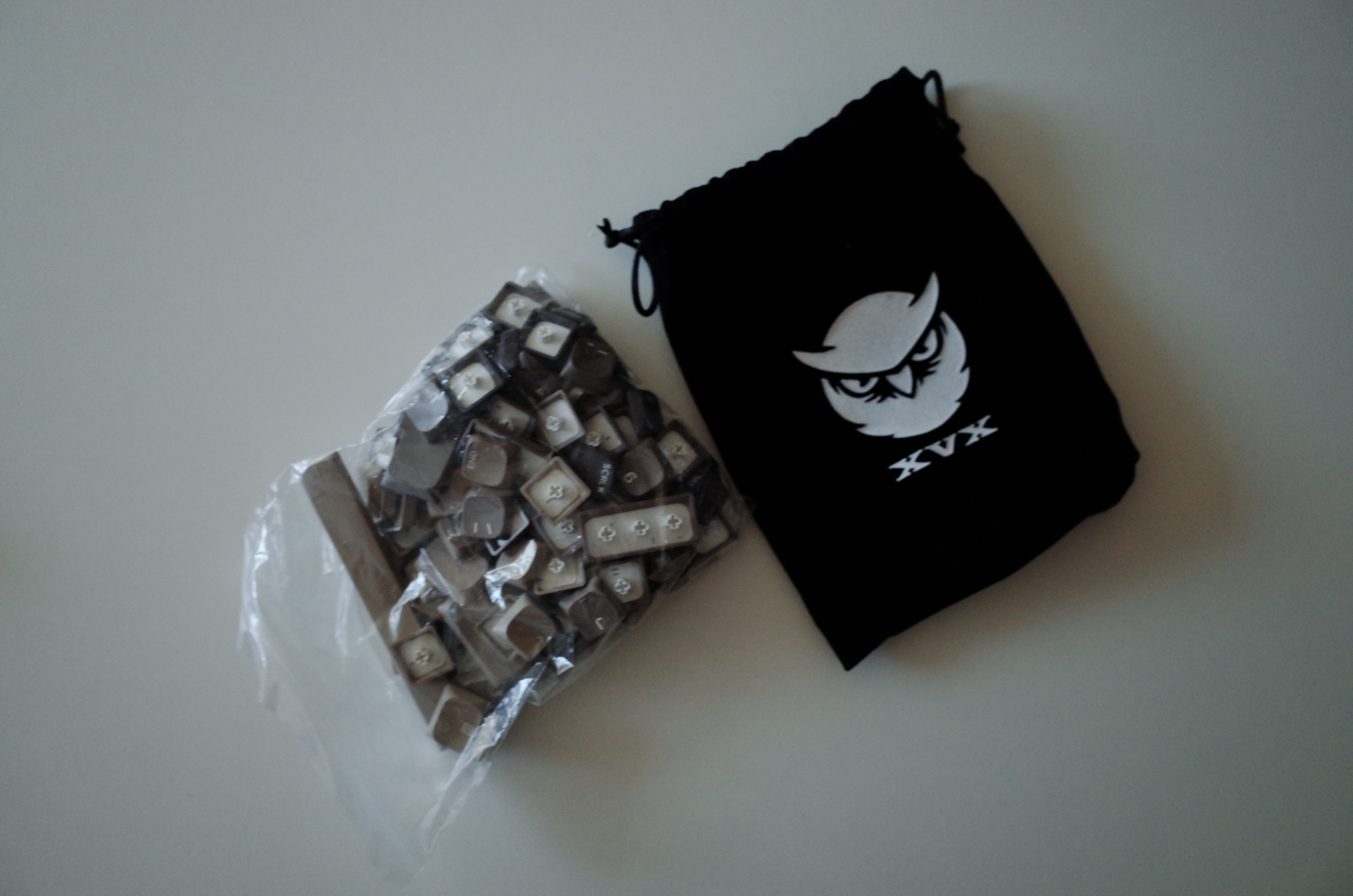 부엉이와 XVX 라는 문구가 새겨져 있는 키캡 파우치.