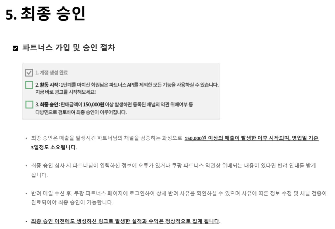 2. 링크를 통한 매출이 15만 원 이상이어야 최종 승인 결정.