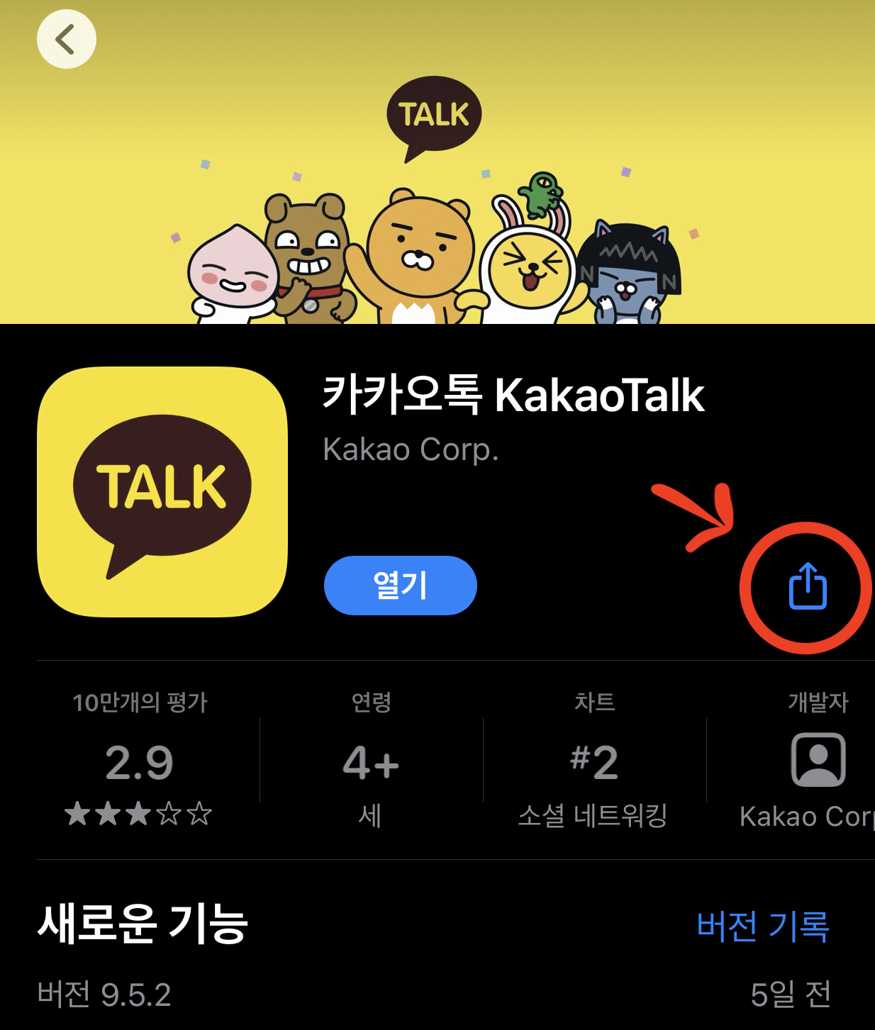 애플은 앱스토어에서 카카오톡 앱 링크를 적어주면 끝.