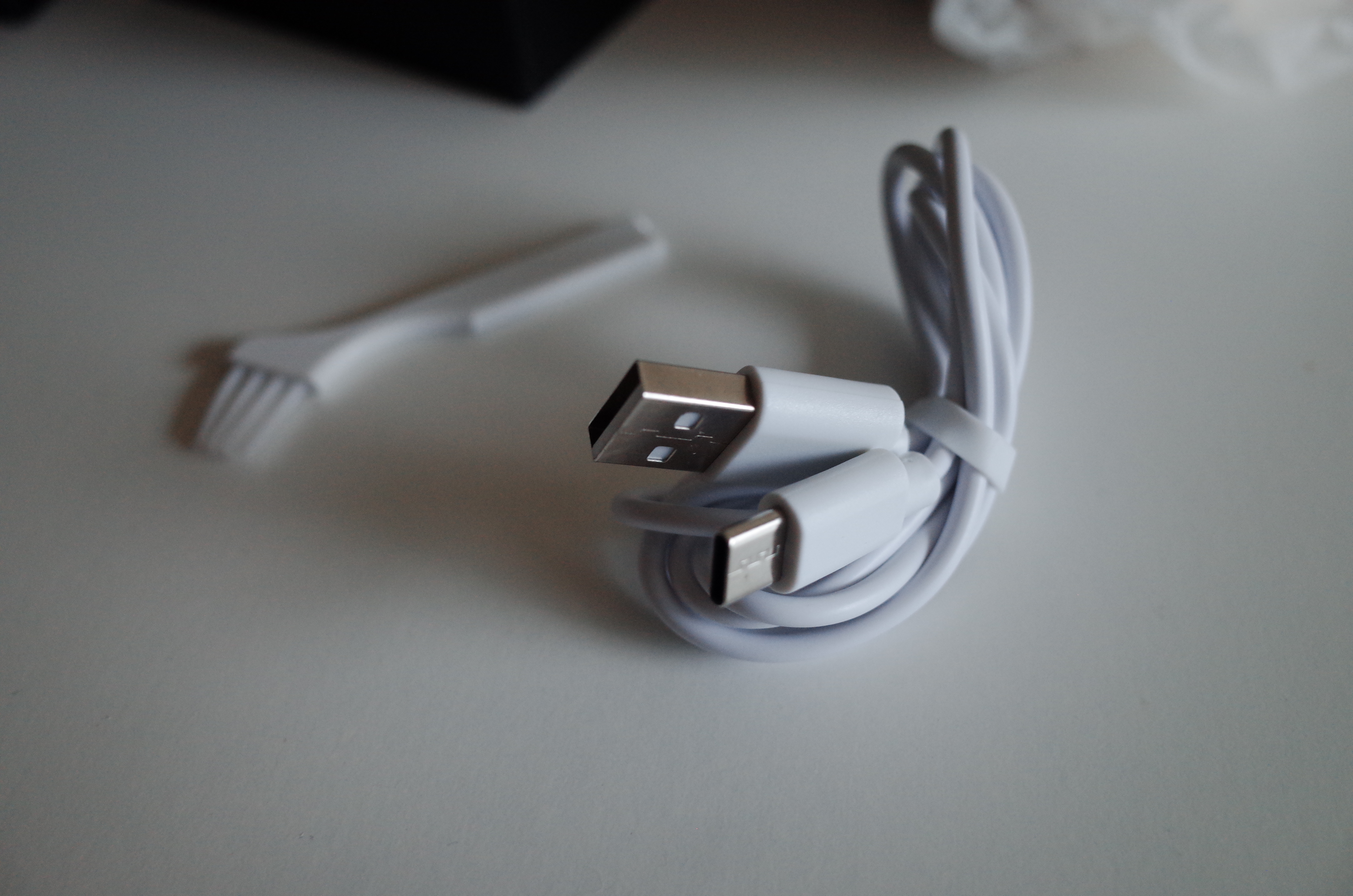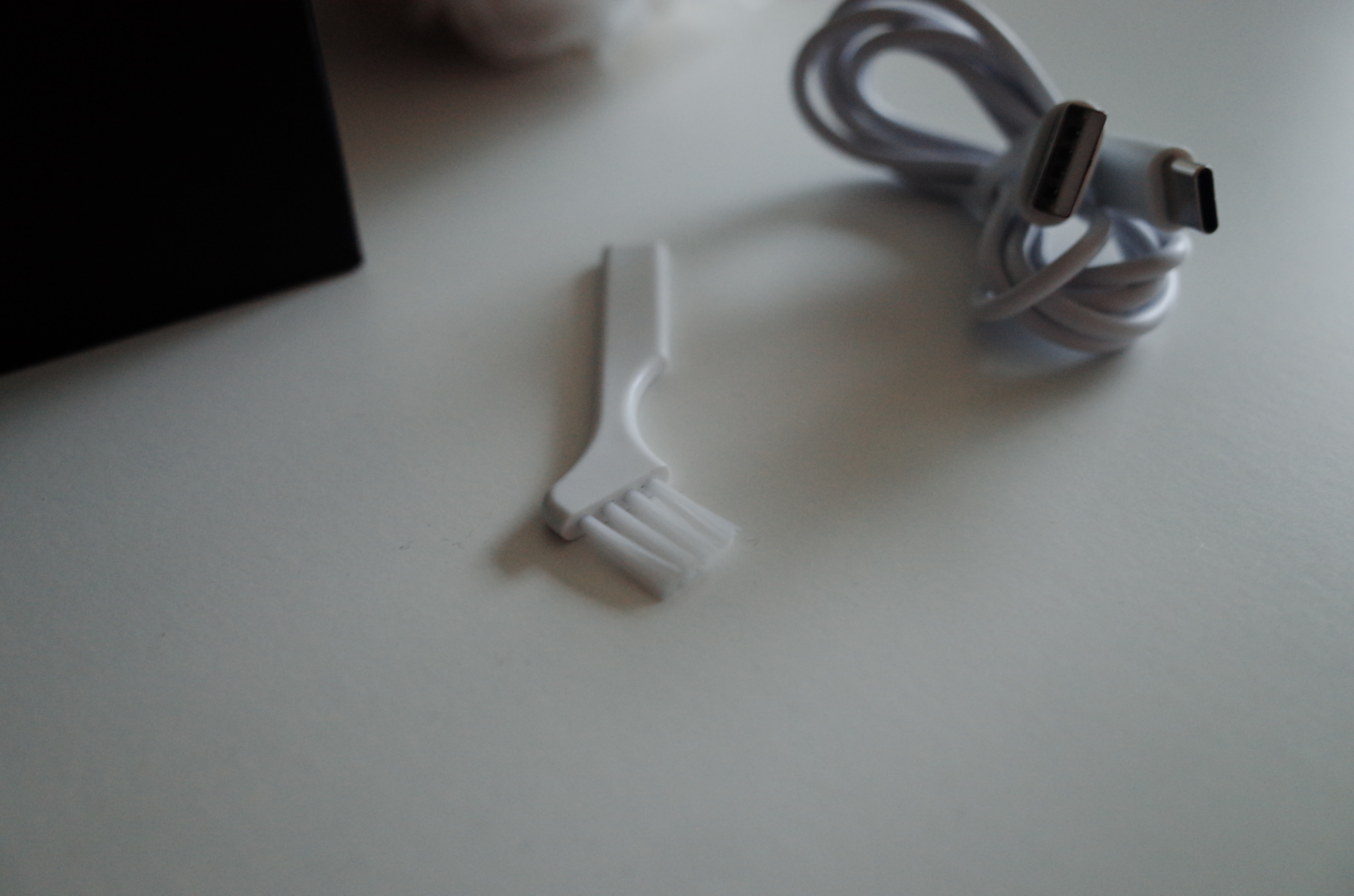 본 상품을 들어보면 그 아래엔 USB C-A 타입의 충전잭과 사용후 청소를 할 수 있는 청소솔이 들어있다.